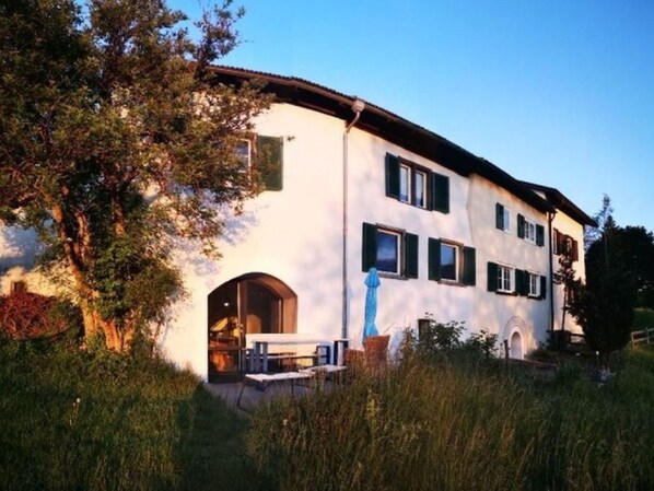 The holiday home is located in a historic Walser house, which is equipped with amenities such as partial underfloor heating for chilly days, a fireplace stove for cosy evenings and modern kitchen equipment including a coffee machine, espresso coffee machine, filter coffee machine and dishwasher.