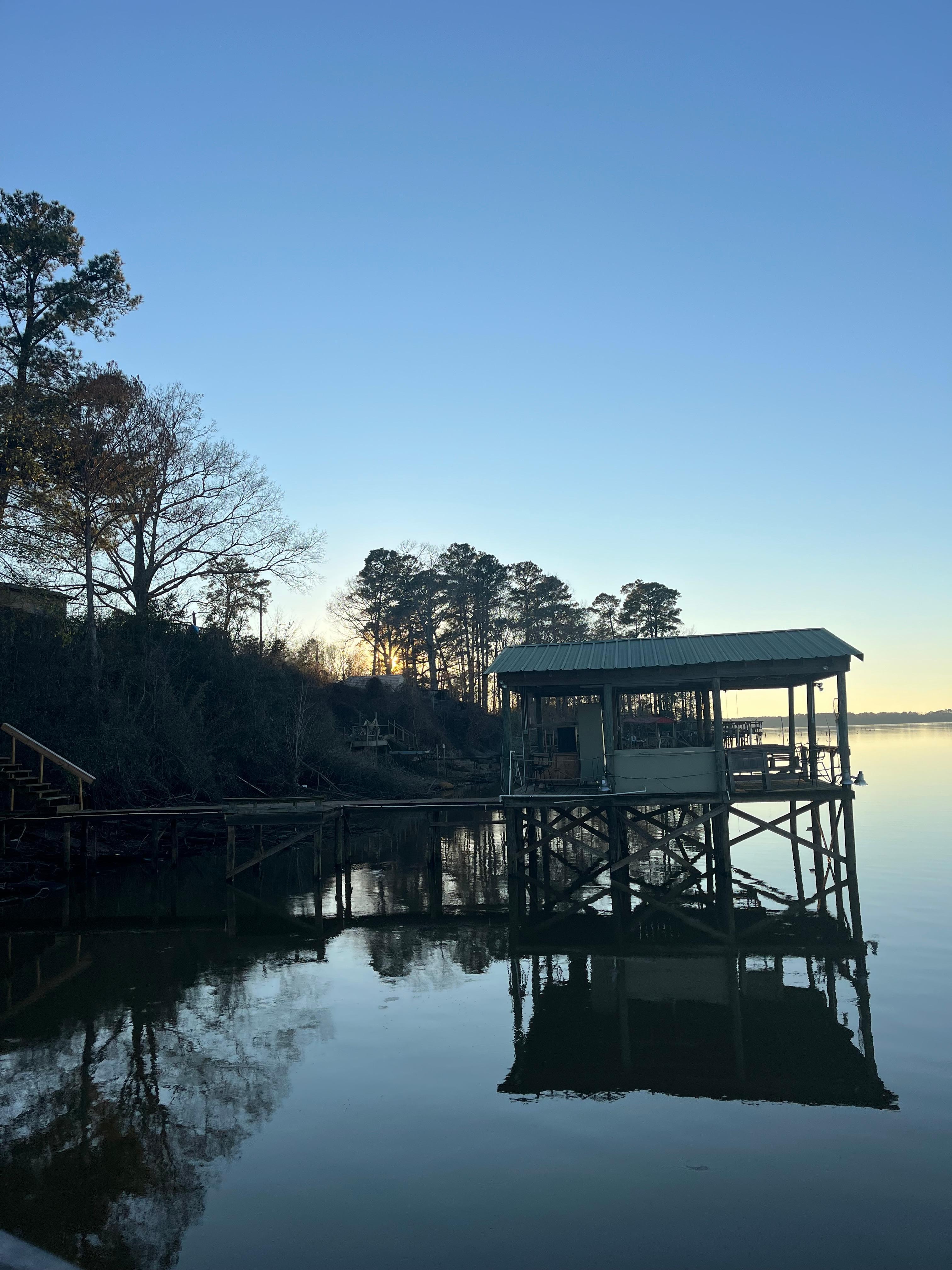 Dieses wunderschöne, völlig neue und individuell gestaltete Haus mit 4 Schlafzimmern und 2 Bädern und 5 Bädern ist im Juli 2019 erhältlich und liegt hoch auf der Klippe mit Blick auf die Lanan-Bucht des Toledo-Bend-Stausees. Entspannen Sie auf den Schaukelstühlen auf der hinteren Veranda, auf der Schaukel auf der Veranda oder um die Feuerstelle, während Sie einen der schönsten Ausblicke auf Toledo Bend genießen. Neu möbliert und mit offenem Grundriss bietet dieses Seehaus je nach Schlafgelegenheit Platz für bis zu 11 Personen.