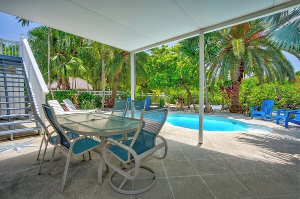 Dieses charmante Einfamilienhaus mit 3 Schlafzimmern und 2 Bädern befindet sich in idealer Lage im Herzen von Sombrero Beach und ist nur 7 Gehminuten vom Strand entfernt. Dieses Haus bietet einen privaten, optionalen Wärmepool inmitten eines wunderschön angelegten Grundstücks und ist die perfekte Wahl für einen erholsamen Keys-Urlaub.