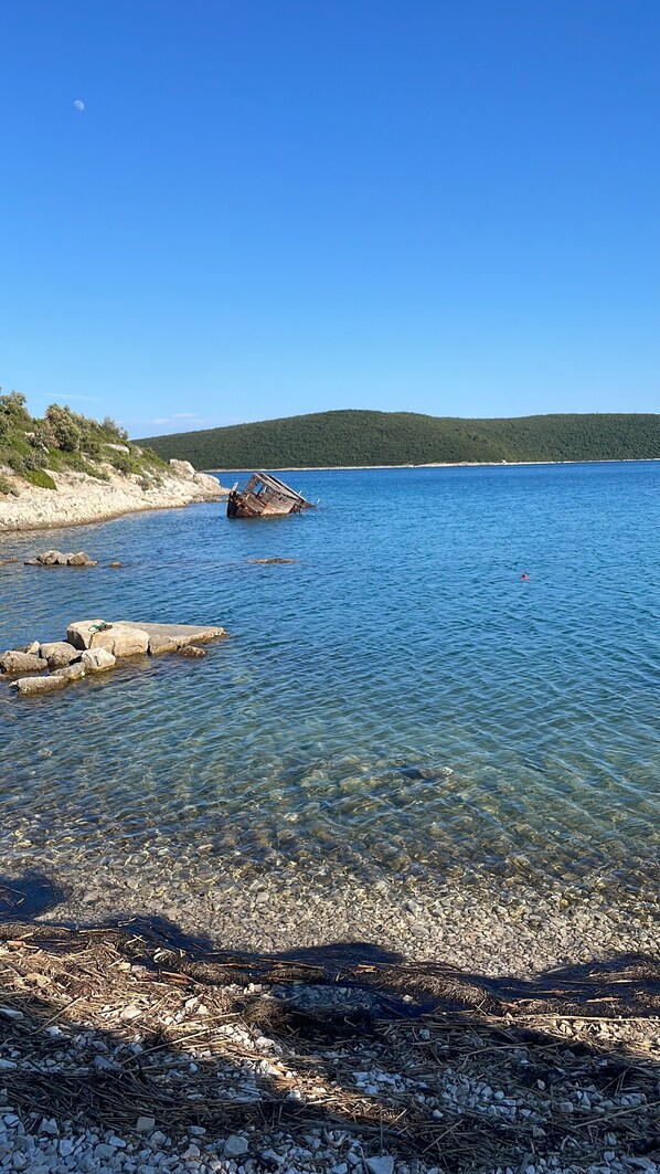 In diesem wunderschönen Haus können Sie abseits vom Massentourismus und Rummel entspannen da sich das Haus in einer ruhigen Sackgasse befindet. Aber dennoch ermöglicht Ihnen die Lage des Hauses, dass Sie in 5 - 10 Minuten Fußweg zu 3 Restaurants (viele weitere Lokale finden Sie im Umkreis von 10 km), zum Geschäft für den täglichen Bedarf und den Bäcker gelangen. Die wichtigsten und schönsten Sehenswürdigkeiten Istriens erreichen Sie mit dem Auto innerhalb von ca 30 Minuten. In ca 300 m erreichen Sie einen Aussichtspunkt, von dem man einen atemberaubenden Blick auf das Meer und die Insel Cres hat.