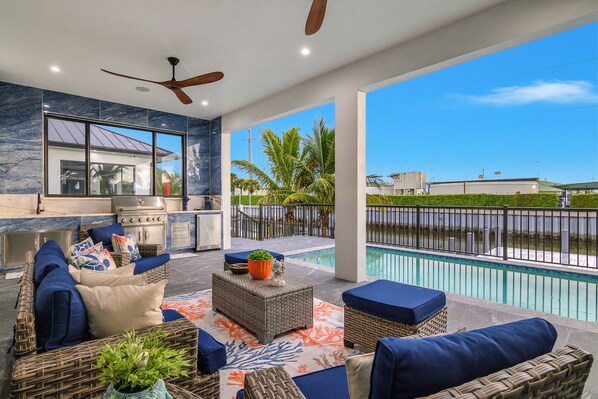 Dank der ausgezeichneten Lage am Ufer ist dieses Ferienhaus zu Fuß nur 15 Minuten entfernt von: Marco Town Center Mall (Einkaufszentrum), Marco Players Theater und Marco Island Brewery. Ebenfalls höchstens 15 Minuten entfernt: Marco Island Medical Center und Veterans' Community Park.