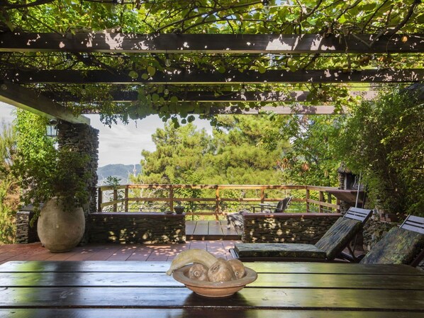 4-Zimmer-Doppelhaushälfte 90 m2 auf 2 Stockwerken. Komfortabel und geschmackvoll eingerichtet: grosses Wohn-/Esszimmer mit Panoramafenster mit offenem Kamin (nur Deko), Sat-TV und Klimaanlage. Ausgang zur Loggia. 1 Zimmer mit Panoramafenster mit 1 Doppeldiwanbett, Dusche/Bidet/WC und Klimaanlage. Küche (4 Kochplatten, Backofen, Geschirrspüler, Toaster, Wasserkocher, Mikrowelle, elektrische Kaffeemaschine). Obergeschoss: 1 abgeschrägtes, offenes Doppelzimmer mit Klimaanlage. Dusche/Bidet/WC. E-Heizung, Klimaanlage. Heizung nur verfügbar von 01.11. bis 15.04. Terrasse, Garten. Terrassenmöbel, Gartengrill. Panoramasicht auf das Meer und das Tal. Zur Verfügung: Kinderhochstuhl, Babybett bis 2 Jahre, Haartrockner. Internet (WLAN, gratis). Parkplatz (1 Auto). Bitte beachten: Nichtraucher-Haus. Maximal 1 Haustier/Hund erlaubt. Rauchmelder, Feuerlöscher. IT045010C2R8PXBGAR