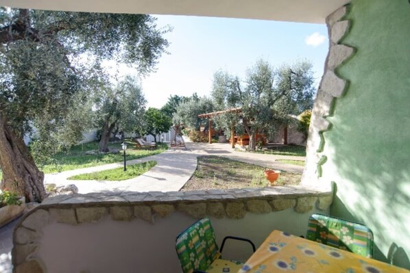 Eingebettet in das Grün der Olivenbäume und dank einer Begrenzungsmauer, die den Garten umgibt, können Sie die maximale Entspannung, Privatsphäre und Ruhe genießen, die dieser Ort bieten kann. Die Zweizimmerwohnungen Banana, Menta und Ciliegio befinden sich im Erdgeschoss und bestehen aus einer Veranda, einer Wohnküche mit Doppelschlafsofa, einem Badezimmer und einem Schlafzimmer mit Doppelbett. Das ebenfalls im Erdgeschoss gelegene Mandarino mit drei Zimmern besteht aus einer Veranda, einer Wohnküche mit Doppelschlafsofa, einem Schlafzimmer mit Doppelbett und einem Badezimmer sowie einem Schlafzimmer mit zwei Einzelbetten und einem Badezimmer. Jedes Apartment verfügt über eine voll ausgestattete Küche, einen separaten Boiler, einen Safe, einen Fernseher in jedem Zimmer, einen DVD-Player, eine Waschmaschine, einen Tisch und ein Bügeleisen sowie einen Haartrockner.