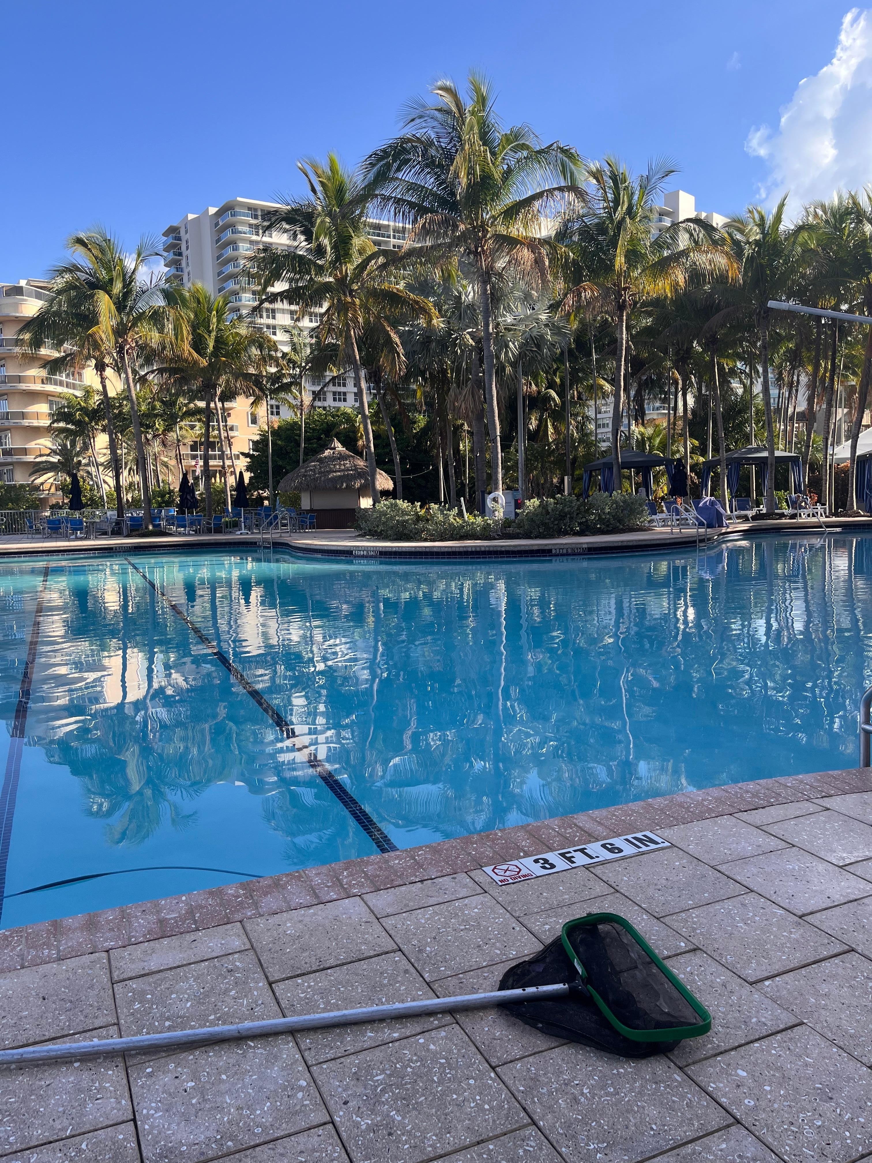 Front desk staff, parking staff and bell desk person were all wonderful - so helpful and kind. The room was clean and had a great bathroom with a low rim step in shower which was helpful for my elderly parent. The pool area and the waterfront location to the Intracoastal was lovely. We got to watch some impressive yachts go by!