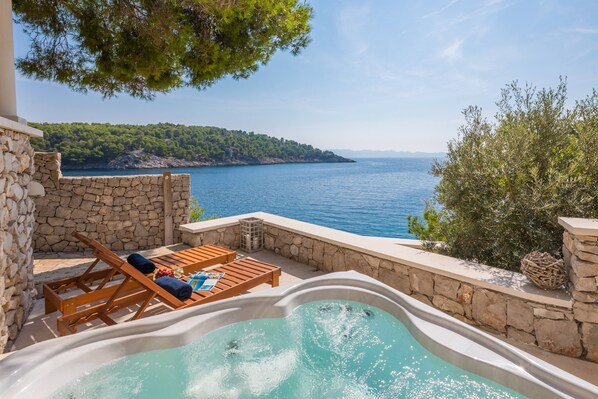 Strandvilla mit Außenwhirlpool in der Nähe von Milna auf der Insel Brac