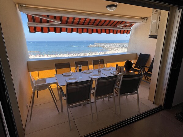 - d’une magnifique vue à 180° sur la Méditerranée et la plage,
