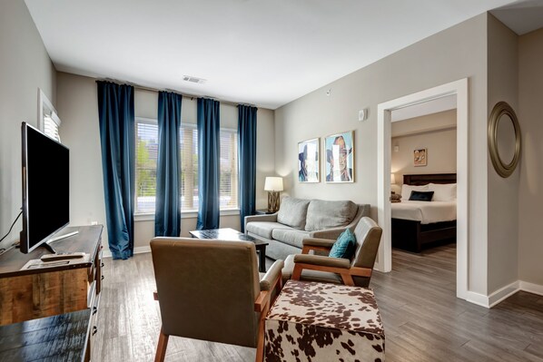 Dieses kürzlich fertiggestellte Apartmentgebäude bietet die nächstgelegenen Unterkünfte zu einigen der angesagtesten Unterhaltungs- und Speiseziele von Nashville.
