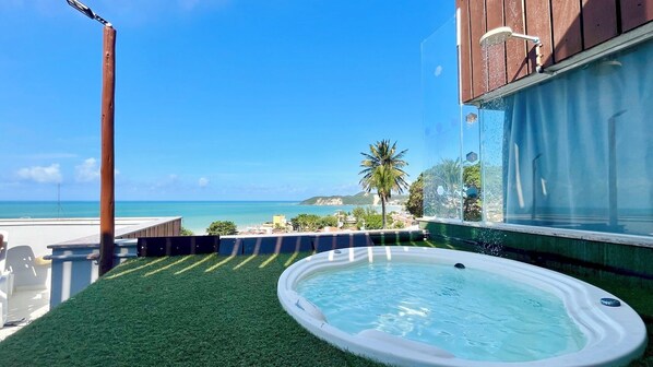 Flat com uma vista incrível do mar de Ponta Negra. Atende bem um casal com até 2 crianças.