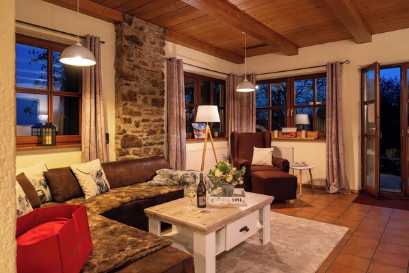 Das Anwesen wurde liebevoll renoviert und hat sich von einem Reiterhof über Gasthof/Pension hin zu einem exklusiven Landhaus entwickelt. Dementsprechend groß ist die Fläche. Wichtig : Sie nutzen das Landhaus sowie den Aussenbereich mit Sajna Whirlpool Spielplatz immer alleine ! Sie reisen gerne in einer Gruppe, schätzen aber auch Rückzugsmöglichkeiten? Dann sind Sie im Landhaus richtig.