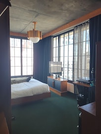 We were able to get a corner room and the view was beautiful! The room itself was so cool with lots of vintage decor. Right when you walk in there was an herbal spice smell that was so cozy. There was a record player with some records that we played and the vibe was just right. We also loved the comfort of the shower with a frosted window in it. Bed was very high quality and nice to sleep in. Would recommend a stay here!