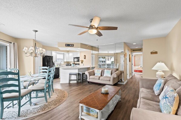 Doesn’t get much more perfect than this property. Close to everything imaginable. Super clean and spacious. The communication and check in/out process was seamless and timely. The view from the back deck was so peaceful. It is very well stocked. Beds are nice. We would have preferred one king bed but so glad and thankful we did not let that deter us from renting this unit. We would have missed out!! The area is slightly back from the main road so it is very quiet. It seems as if many staying there may be owners but the environment was peaceful and perfect. The pool and hot tub were clean and in amazing shape all day everyday. The walk to the beach is short. But is also a quick drive to the paid parking spot across from the beach access. We would rent this condo again in a second. The owners made our booking , check in and check out so crazy EASY ….its almost link a magic wand was waved! Don’t miss out on this unit. We will be back!