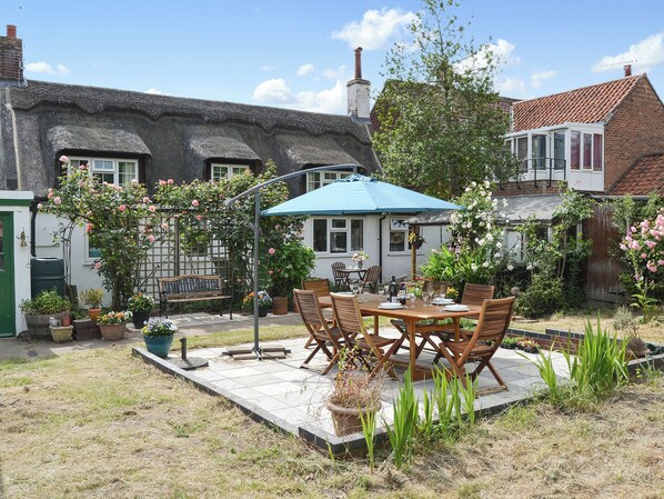 Chambre 3: Avec deux lits jumeaux .. Stockage chauffage électrique, électricité, draps, serviettes et Wi-Fi inclus. Voyage lit bébé, chaise haute et stairgate disponibles sur demande. Buanderie extérieure avec machine à laver. Jardin clos avec pelouse avec terrasse, meubles de jardin et barbecue. Magasin de vélo. Parking privé pour 2 voitures; stationnement supplémentaire sur la route. Ne pas fumer. Veuillez noter: il y a un puits protégé dans le jardin .. Au cœur du joli village au bord de l'eau de Horning, ce magnifique chaumière mitoyen a été entièrement rénové pour offrir un hébergement bien aménagé. Bénéficiant de son propre parking privé et de son jardin clôturé avec un patio en échiquier, ce cottage est idéal pour se détendre, jouer et profiter du grand ciel de Norfolk. Située à proximité de l’annexe administrative des propriétaires, où réside son chat, elle offre de nombreuses possibilités de promenade, de vélo et d’observation des oiseaux à la porte.