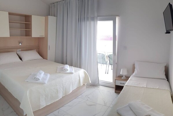 Apartments Sun Dance in Novalja, Ličko-senjska County, Croatia, offers accommodations featuring heated pools. The property provides amenities such as air conditioning, fully equipped kitchens, private bathrooms, and balconies or terraces. Guests can enjoy facilities like free Wi-Fi, satellite flat-screen TVs, and barbecue areas. The apartments are conveniently located near local attractions, with Lokunje Beach approximately 1.8 km away, Babe Beach around 2 km away, and Planjka-Trinćel Beach about 2.2 km away. The nearest airport is Zadar Airport, situated 85 km from the property. Note: Pets are not allowed. Private parking, reservation is not required. Wi-Fi is available throughout the property. Baggage drop-off is available before check-in. Baby cot is available on request. This one-bedroom can accommodate up to four guests. It features a Flat screen TV .The private bathroom is equipped with a shower and toilet. Thanks to its excellent location, everything you'll need for your vacation is just a short walk away from the property. Grocery stores and restaurants—300.00 m. The beach is 500 m away from the property. The airport is 70 km away from the property.