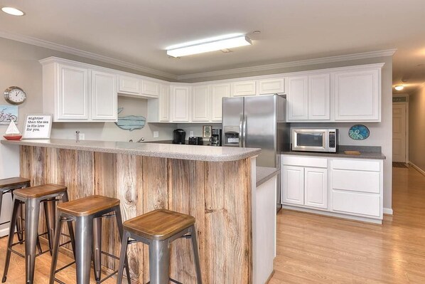 Tumlin's Tide OW#2104 was a beautiful unit. It was very tastefully decorated with a subtle beach theme. Everything in the unit was in working order. The kitchen was stocked with adequate cooking and dining utensils. They have a coffee pot, electric can opener, crockpot, etc. The cookware, Select by Caphalon was super nice to cook in. All of the appliances were updated and in great condition. The beds were comfortable. (*We forgot our own pillows by accident...we would suggest bringing your own pillow...but we made do just fine). The bathrooms were roomy. The bathrooms both have showers, no tubs...but we made do just fine. The televisions were a BIG bonus! Loved the size of the one in living room. WiFi was wonderful, we had no problems. There was an elevator that made loading and unloading extremely easy. The walk to the beach was perfect. We had multiple generations in this trip and we had plenty of gathering space, and at the same time privacy when needed. We loved that this condo was very child friendly...no breakables at child hand levels. We had two nice parking spots under the condo. We enjoyed the pool...nicely maintained. We loved the location being so close to Food Lion, DQ and several restaurants within walking distance (we like Beana's and Oak Island Restaurant) and Pelican Seafood for fresh fish and shrimp was within walking distance. And if you need a souvenir t-shirt or bric-n-brac, you can walk one block.
