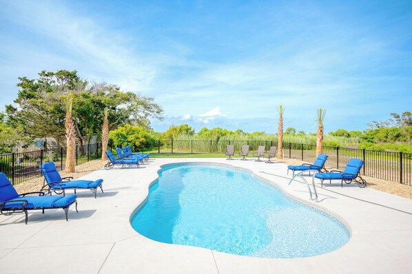 Dieses Ferienhaus in Oak Island bietet einen Privatpool und eine Küche