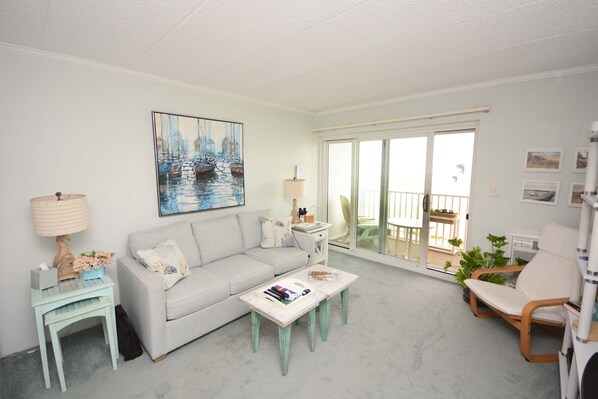 Kitschige 1 Schlafzimmer Oceanfront Condo mit kostenfreiem WLAN, Coastal Decor und einem atemberaubenden Blick Uptown und nur wenige Schritte vom Strand entfernt!