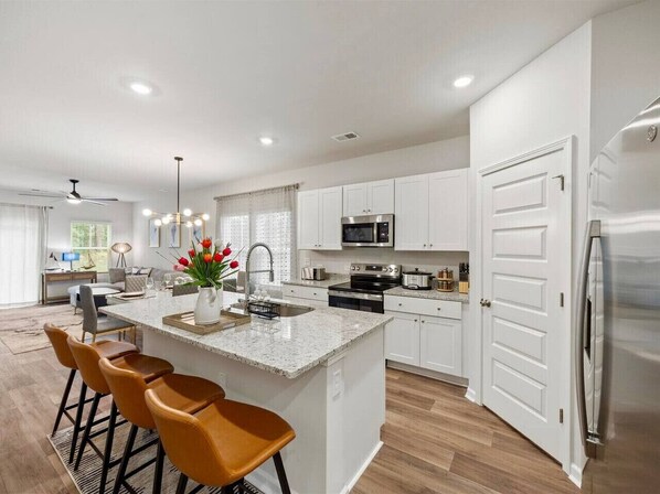 Les chambres climatisées de cette maison de vacances incluent un sèche-cheveux. Les chambres donnent sur un balcon. L'ameublement des chambres inclut des bureaux et des tables à manger. Les chambres ont une cuisine avec un réfrigérateur, une plaque de cuisson, un micro-ondes et une cafetière ou une bouilloire.