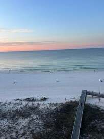 We arrived to property just before scheduled check in at 4 PM. We were not given access code to enter the property until 5:25 PM. We spoke with the service desk multiple times to get an update. They initially told us that they couldn’t give us an estimated time for unit to be ready. The personnel at the service desk allowed us entry to at least place our belongings in the unit. The housekeeping manager came back to finish cleaning / inspecting after we unloaded. When we inspected our sheets in the master suite we noticed that there was blood or something similar in color stain on the sheets and the comforter. We notified the service desk and someone was able to change the sheets while we were out of the unit. There were multiple door handles in the unit that were not functioning and the secondary bedroom(the one with the two double beds) door wouldn’t shut. The master one would stick. It was very difficult to open once you close the door. The view was great from the balcony and we enjoyed sitting out there in the mornings. We enjoyed the indoor pool and the easy access to the beach.