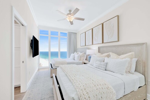 Alle Zimmer bei Luxury East Corner 25th Floor Beachfront Condo 4BR/3BA NEW TO RENTAL MARKET bestechen durch Extras wie Kamine und eine Klimaanlage sowie Ausstattungsmerkmale wie kostenloses WLAN und Esstische.
