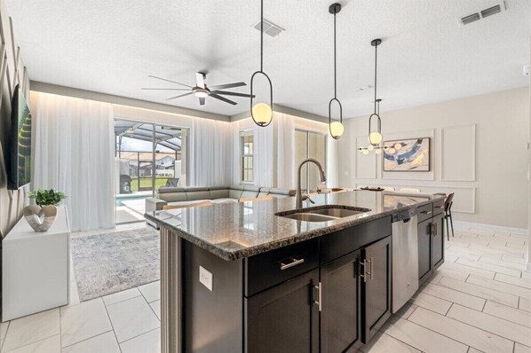 Family Townhome near Disney! Waterfront Patio w/Pvt Splash Pool, Modern Decor,Free wifi, Free Waterpark, BBQ Grill!!