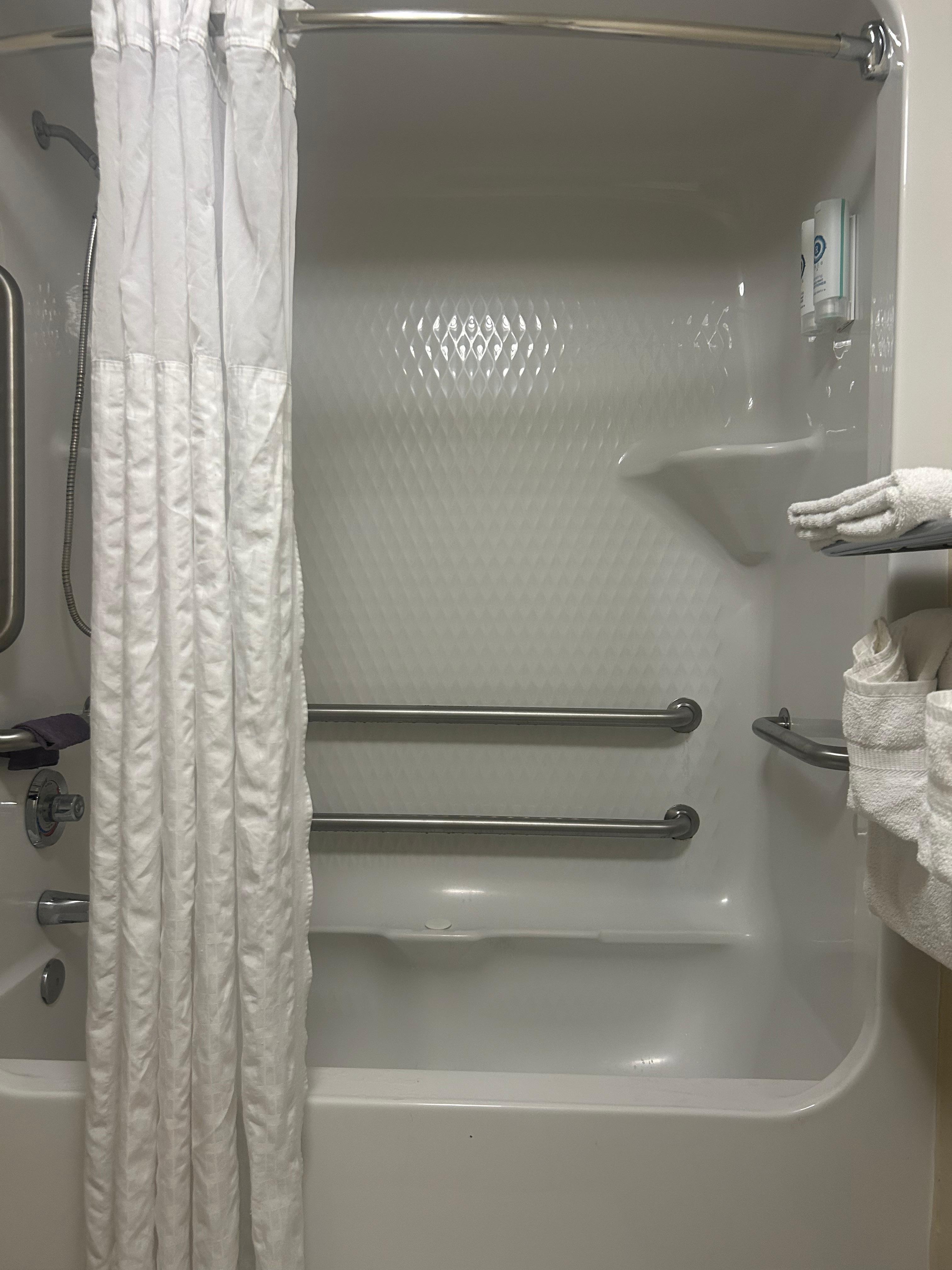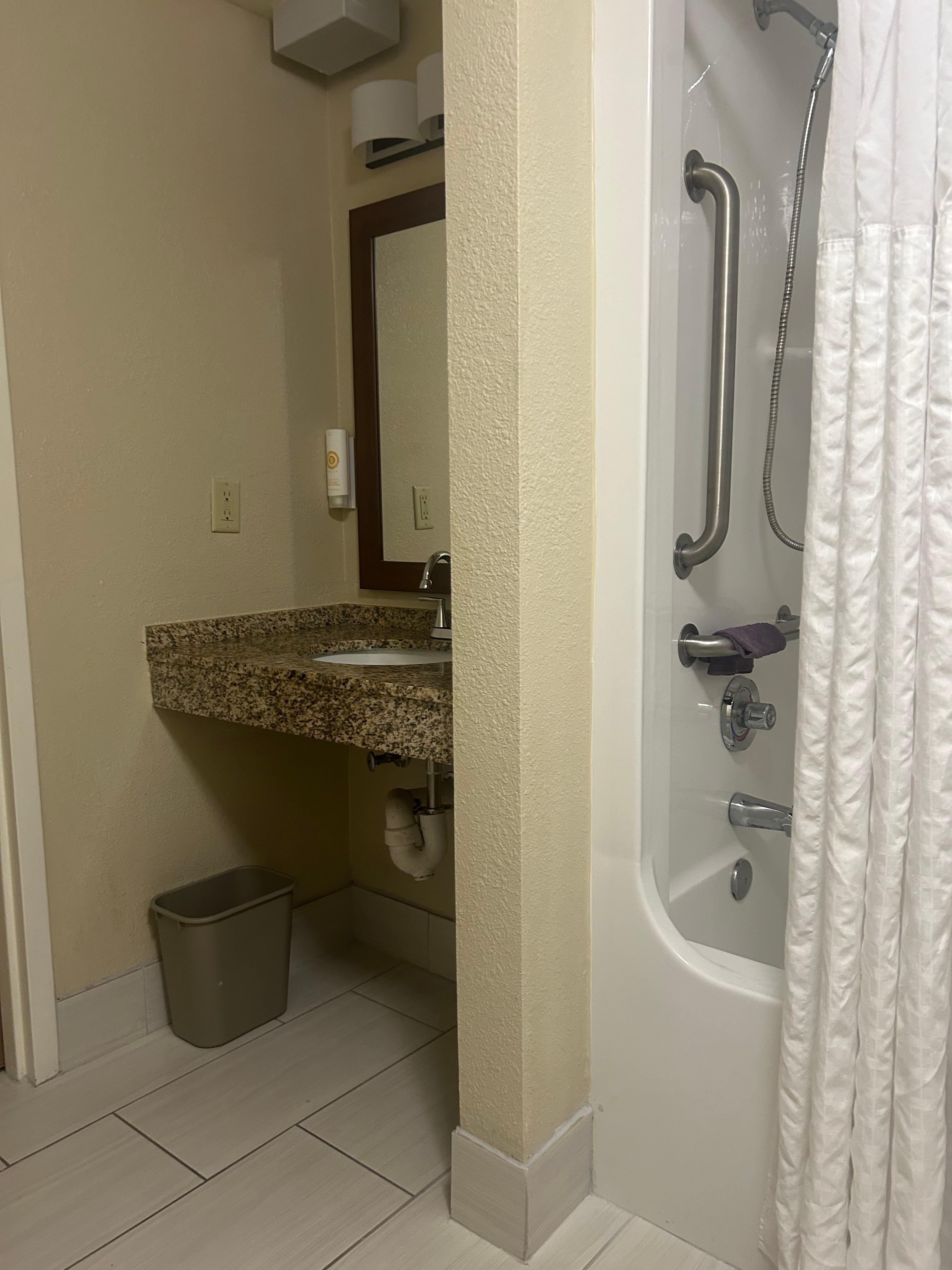 I arrived after midnight with 3 children and my room was ready and available. The room was 2 queen with sofa bed coach and accessible bathroom. Bathroom was large and bed were very comfortable. Room was very spacious. I didn’t care for the carpet but minor thing that didn’t really matter. Breakfast was scrambled eggs, home fries, huge sausage links, make your own waffles (strawberry and plain), cereals, breads, pastries, yogurt, fruits, coffee bar and juice machine. I really enjoyed the breakfast! I asked for an extra hour for check out due to our 2am arrival and Jaqueline was very kind and accommodated me with no issues. Stayed one night and will stay again!