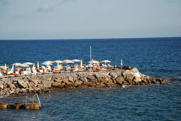 Großer Kieselstrand mit freiem Zugang zu einem paar Minuten.