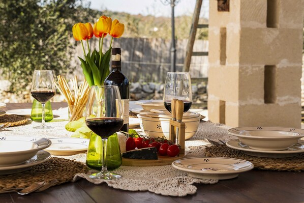 Neu renovierter Trullo mit großem Schwimmbad und weitläufigen Grünflächen zum Entspannen in den Hügeln von Ostuni. Eine elegante Villa mit zwei typischen konischen Zimmern mit eigenem Bad und intelligenter Klimaanlage warm/kalt. Entspannendes Badezimmer mit interner Hydromassage und eine geräumige Küche mit einem alten funktionierenden Kamin. Draußen haben wir eine fantastische beleuchtete Terrasse am Pool,wo Sie in der unwiderstehlichen apulischen Landschaft zu Mittag und zu Abend essen können. Das bezaubernde Trullo Lucia aus dem Jahr 1700, das gerade nach der Tradition von Ostuni renoviert wurde, wobei die klassischen weißen Farben der Wände und der "Chianche" hervorgehoben wurden, bildet die erste Etage des historischen Wohnhauses. Die Villa, sehr hell und ruhig, wurde kürzlich renoviert und befindet sich im Erdgeschoss mit einem unabhängigen Eingang. Der Trullo besteht aus einem geräumigen Wohnbereich mit einem Schlafsofa, Smart-TV, eine schöne voll ausgestattete Küche mit Herd, Kühlschrank, Gefrierschrank, Mikrowelle, Geschirrspüler, Kaffeemaschine, verschiedene Utensilien und Küchentisch und eine antike Arbeits Kamin. Außerdem verfügt es über 2 typische konische Zimmer aus Chiancarelle, jedes mit eigenem Bad (Dusche, Waschbecken, Toilette, Bidet, Haartrockner und Willkommens-Set mit Shampoo, Duschbad und Körperlotion), die Ihnen ein atemberaubendes Erlebnis bieten werden. Intelligente Klimaanlagen, die per App reguliert werden können, so dass Sie schon bei Ihrer Ankunft ein kühles und gemütliches Ambiente genießen können. Außerdem gibt es spezielle natürliche Nischen in den Zimmern, Smart-TVs, doppelte Moskitonetze und Safes. Eines der beiden Bäder verfügt über einen wunderbaren, entspannenden Mini-Pool mit Hydromassage. Im Außenbereich gibt es einen großen Swimmingpool und eine beeindruckende Steindusche, weitläufige Grünflächen mit Liegestühlen und Hängematten, um im Schatten jahrhundertealter Olivenbäume zu entspannen und die sanften Strahlen der apulischen Sonne zu genießen. Für Mahlzeiten im Freien gibt es eine herrliche beleuchtete Terrasse mit zwei Steingrillfeuern in der Nähe. Der Trullo ist mit hochwertiger Bettwäsche und Handtüchern ausgestattet und verfügt auch über eine moderne Waschmaschine.