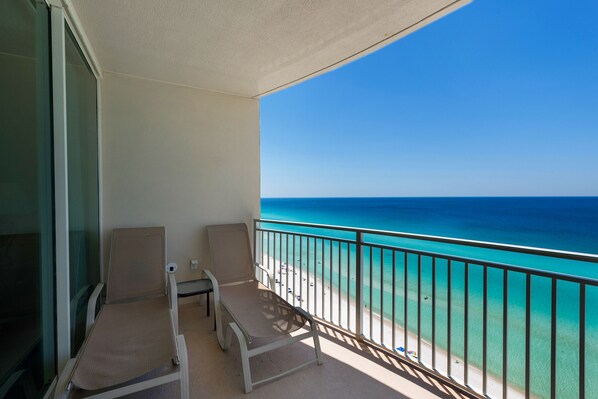 0504 - 2B / 2 Bad mit Kojen - Gulf Front Balkon - Wohnzimmer mit Blick auf den Golf