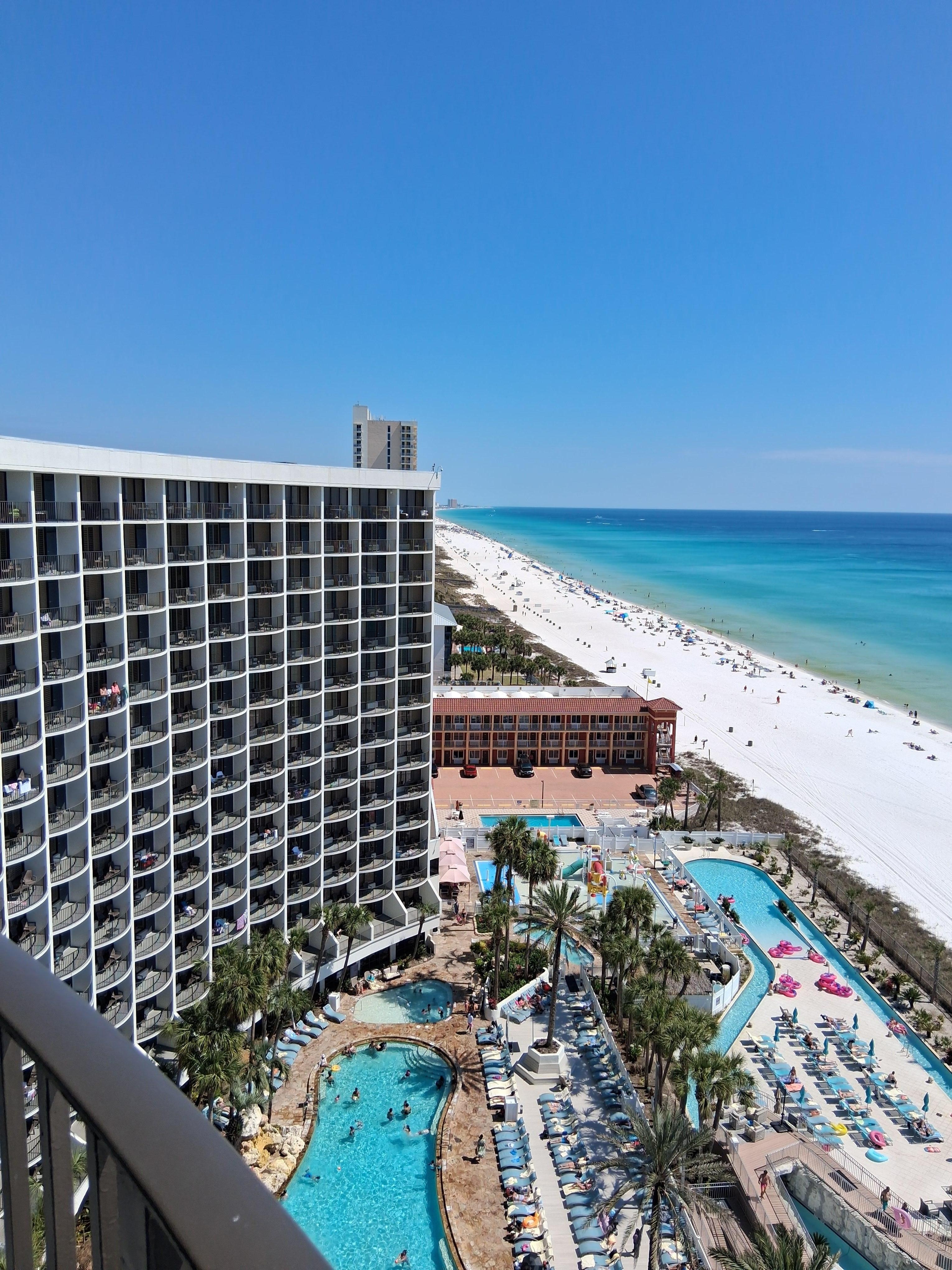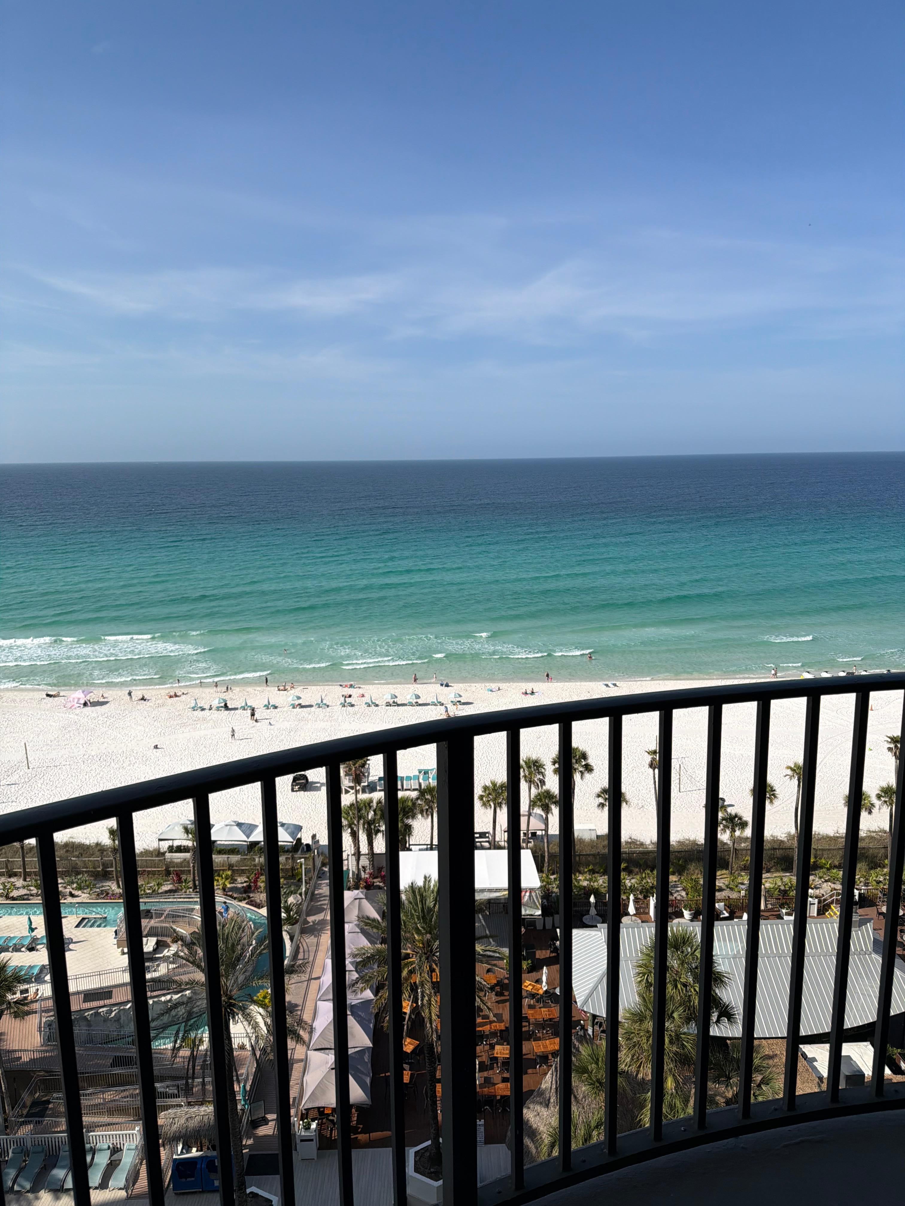 We had a great view of the beach as well as the pool and lazy river area. We were able to see everything from our room on the 12th floor including the fire dance. Food at the bar area was delicious and the staff was very friendly. Our room was clean and comfortable. Only negative was cheap toilet paper.