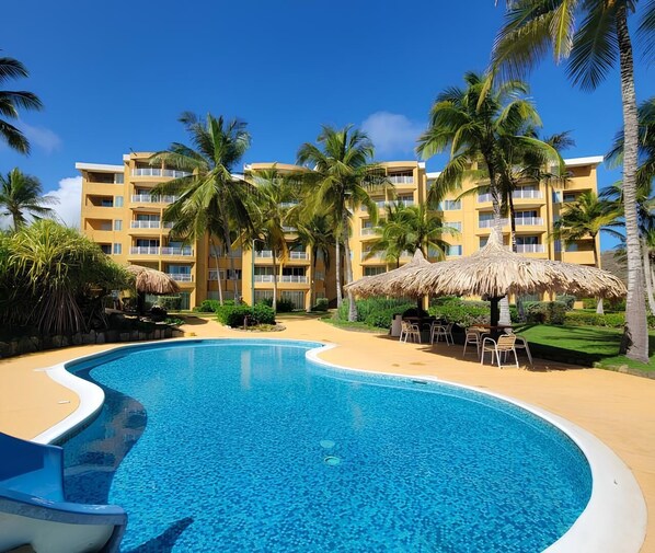 Apartamento con Vista al Mar, Playa, Piscina, A/c, Wi-fi, Tanque de Agua,