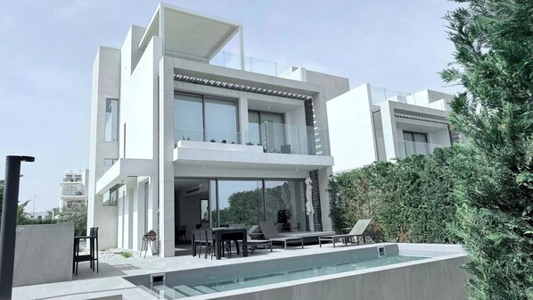 L'espace extérieur d'Azure Seaview est parfait pour la détente et les loisirs. Plongez dans votre piscine privée, détendez-vous sur les chaises longues ou allumez le barbecue pour un délicieux repas entre amis. Des meubles d'extérieur confortables entourent la piscine, offrant amplement d'espace pour se détendre et profiter du soleil méditerranéen. Pour ceux qui apprécient un peu de hauteur, la terrasse sur le toit offre une vue imprenable et un endroit idéal pour admirer des couchers de soleil pittoresques.