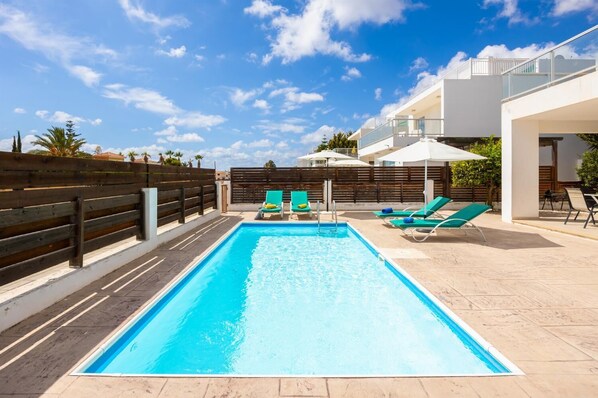 Smelt damp, kitchen walls covered in black mould from damp. Back garden awful, view from kitchen window was stack of broken deckchairs, pool maintenance cupboard also in disrepair. Very limited cooking appliances, no chopping board, kitchen knives, fry pan, oven trays. Electrical appliances two pin in a three pin property, not enough adaptors to compensate. Fridge broken and leaking water. Only one parasol for four guests. Brother-in-law spent whole holiday sat on porch area to stay in shade. Poor customer care after service, spoke to 5 different people before someone eventually visited on day 6 of holiday. Some utensils provided on day 6. Fridge not replaced until day before we were due to return home.Despite requesting second parasol on day one, this only arrived an hour before we were due to check out of property. In over 10 years of renting villas this is the worst experience we have ever had. On a positive, location excellent for restaurants, shops and beach, south facing villa, swimming pool well maintained. Also permitted complimentary late check out. Hopefully our efforts to improve villa facilities made it a better experience for those renting the villa after us. Have taken number of photos but nothing to gain from sharing them publicly.