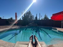 My husband and I loved our stay at Chris’ place! It’s the best rental place we’ve stayed at. It was so clean and beautiful—inside and out. Check-in/out was a breeze. Awesome communication with Chris, too. Lots of little extra amenities that made the stay even more enjoyable. The backyard was our favorite part — so lovely and relaxing. The pool was clean and warm enough for us Wisconsinites! The hot tub had so many fun features. The nice lounge chairs and seating areas around the backyard were great too. We loved the pool floaties too! We will definitely look to come back again next year! We’re so thankful to have been truly refreshed at this oasis!