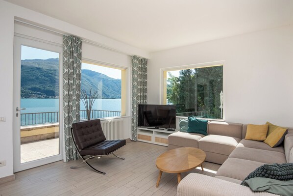 Diese einzigartige Seeufer Villa, komplett neu renoviert, ist etwas ganz Besonderes und unvergesslich: es liegt direkt am Ufer des Sees ist! Ein blühten terrassierten Garten umgibt das Anwesen, um seinen Gästen die Gewährung von Privatsphäre. Von der gesamten Villa, Terrassen, Balkon und Garten können Sie ein breites Panorama mit herrlichem Blick auf den See und die Berge bewundern. Vom Parkplatz aus führt Sie eine Treppe in Richtung der Villa hinunter und dem Ufer des Sees. Wenn Sie die Villa betreten, gelangen Sie in das Erdgeschoss, wo Sie den Wohnbereich zu finden, die Küche, um den Essbereich und ein Gäste-WC mit auch die Waschmaschine. Im ersten Stock befinden sich die 3 Schlafzimmer: zwei Schlafzimmer mit Doppelbetten, Sat-TV, den See Gesicht und ein großes Doppelfenstertür zum Balkon, der Ausgang haben; das dritte Schlafzimmer mit 2 Einzelbetten und hat auch ein Fenster mit Blick auf den See. Auf der ersten Etage gibt es auch 2 Badezimmer: man hat eine große Dusche, während die andere eine Jacuzzi-Badewanne. Es gibt eine Schiebetür, die 2 Suiten erstellen können: eines mit einem Doppelbett und das Badezimmer mit der Badewanne; der andere mit einem Doppelzimmer, das Bad mit Dusche und Schlafzimmer mit 2 Einzelbetten. Daraus ergibt sich ein zusätzliches Gefühl der Privatsphäre zum Beispiel im Falle von Gästen wie zwei Paare oder eine Familie mit granparents. Vom Wohnbereich gelangen Sie in das vordere Terrasse mit Tisch und Stühlen, und auch die große Terrasse neben dem Haus, in dem Sie die Sonnenliegen haben, den Grill und einen anderen Esstisch mit Stühlen für Mahlzeiten im Freien. Eine Treppe führt von diesem Bereich auf der unteren Ebene der Villa, wo es eine weitere Terrasse, ein kleiner Garten mit Pflanzen zum Kochen wie Rosmarin, Salbei und Minze und dem Tor zum Schwimmen oder zur Seepromenade in Richtung See zu verlassen für ein Spaziergang. Das Haus ist sehr ruhig und der See bietet absolute Ruhe, aber es ist möglich, mehr Leben nur zu Fuß zum Hauptstrand des Dorfes, wo die Einheimischen, die Touristen und die Windsurfer entsprechen. Cremia und dem nördlichen Teil des Comer Sees in der Regel wird weltweit als einer der besten Orte zum Segeln, Windsurfen und Kitesurfen bekannt. Ein lokaler Wind aus Süden kommt jeden Tag in den frühen Nachmittag und garantiert Spaß für die Segelliebhaber ... und eine frische Brise in heißen Tagen! In dem Dorf, nur wenige Gehminuten vom Haus entfernt gibt es ein paar Restaurants, Pizzerien und Bars Kaffee. Weitere gute Restaurants ein bisschen weiter, sondern auch leicht zu Fuß zu erreichen. entlang der Seepromenade. Das schöne 4 km Fußgänger Seepromenade von Cremia zu Musso führt direkt vor der Villa und erlaubt während eines entspannenden Spaziergang die herrliche Aussicht auf den See und die Berge zu genießen. Privaten Parkplatz für 2 Autos. Free Wi-Fi.