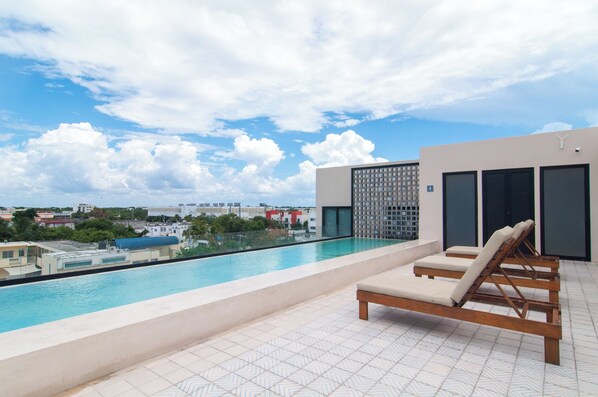 Bright 1 Bedroom with balcony, Gym, WiFi, Infinity Pool at Roof top