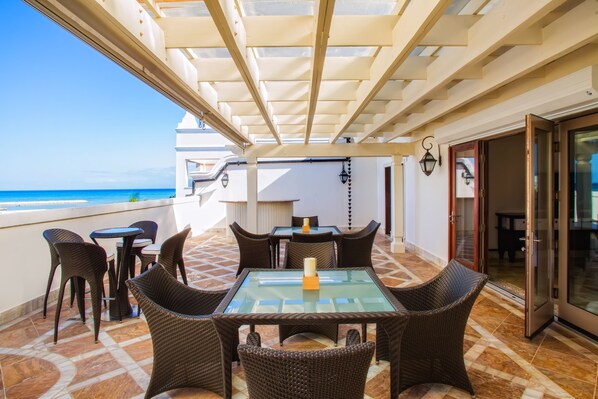 Dieses sehr große Haus liegt direkt am Meer am Yachthafen mit zwei Etagen und der Möglichkeit, bequem 13 Personen zu schlafen. Beide Etagen verfügen über großzügige Terrassen, die das Meer übersehen. Die oberste Terrasse verfügt über einen Whirlpool mit Blick auf den Ozean, eine große Penthouse-Terrasse im Freien mit zwei großen Esstischen, einem Weber-Grill und einer Wet-Bar (Gäste können ihren eigenen Alkohol kaufen). Die untere Etage verfügt über eine Küche, ein großes Esszimmer und einem großen Wohnbereich mit zwei Schlafzimmern. Ein Schlafzimmer hat vier Einzelbetten mit einem Badezimmer und das zweite Schlafzimmer ist ein Meister mit einem Kingsize-Bett mit Bad (für 2). Im Obergeschoss befindet sich ein Schlafzimmer mit zwei Queensize-Betten und einem Vollbad, ein Hauptschlafzimmer mit einem Kingsize-Bett und einem Tagesbett (für 3 Personen) mit einem kompletten Badezimmer und einem begehbaren Zedernschrank. Es gibt auch ein Überlauf-Schlafzimmer, das als Fernsehzimmer genutzt wird, aber auch zwei Personen schlafen kann (kein Vollbad). Die Wohnung ist ca. 7000 Quadratmetern und verfügt über einen Butler und einem optionalen Koch. Haushaltshilfe und zwei Parkplätze sind auch in der Miete inbegriffen. Das Apartment verfügt außerdem über 6 große, digitale Flachbildfernseher mit Internetanschluss, einen Weinkühlschrank und einen Gasgrill, die vom Küchenchef genutzt werden können. Das Gerät ist klimatisiert und verfügt über kostenfreies WLAN im gesamten Gebäude. Alle Möbel ist ganz neu, wie die Wohnung ist neu renoviert. Ideal für einen Familienurlaub, der Tage am Strand verbringen möchte, oder für eine Gruppe von Golfern, die nach dem idealen Ort suchen, um sich nach einem Golftag verwöhnen zu lassen. Mieter dieser Eigenschaft sind die ermäßigte Greenfees von Punta Espada.