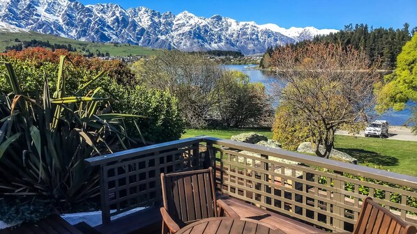 Inmitten terrassierter Gärten mit Blick auf das friedliche Naturschutzgebiet, direkt gegenüber vom Lake Wakatipu. Von der Lakefront Terrace sind es zehn Minuten zu Fuß durch die nahe gelegenen botanischen Gärten von Queenstown, die Sie zu den Restaurants, Cafés, Geschäften und dem Nachtleben der Innenstadt bringen.
