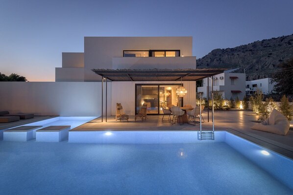 Diese Villa am Strand mit einen Privatpool, nur ein paar Schritte von Strand von Pefkos entfernt