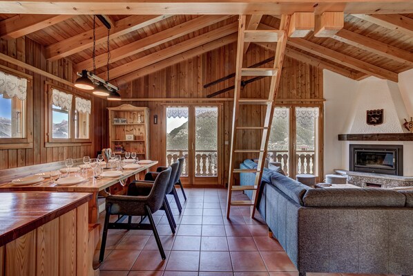 AusstattungDas Hauptgeschoss dieses Chalets besteht aus einem offenen Küchen-/Wohn-/Essbereich mit Kamin. Im gesamten Haus gibt es eine Fußbodenheizung, die Sie mit individuellen Thermostaten steuern können. Die Küche ist komplett ausgestattet mit allem, was man für die Familienverpflegung braucht: Geschirrspüler, Wasserkocher, Toaster, Kühl-/Gefrierschrank, Kaffeemaschinen (Nespresso und elektrische Filtermaschine), Backofen und Kochfeld. Es gibt Fondue- und Raclette-Sets für einen traditionellen Schweizer Abend vor dem Holzfeuer. Eine Waschmaschine und ein separater Trockner stehen Ihnen in der Waschküche zur Verfügung. Für Mahlzeiten im Freien im Sommer gibt es einen Esstisch mit Stühlen und einen Brasero.