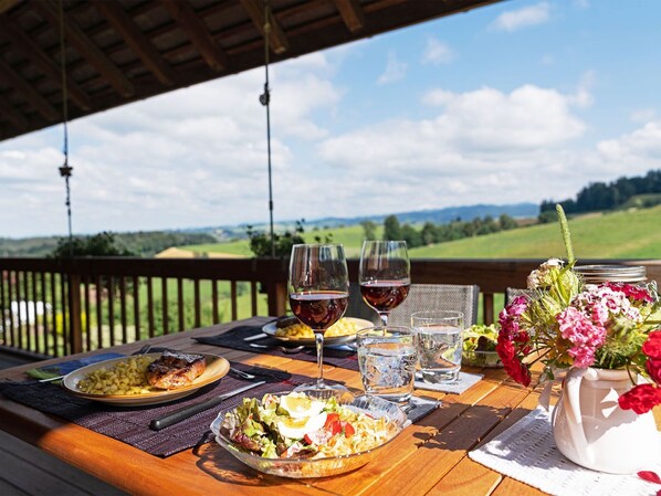 Für kulinarische Erlebnisse steht Ihnen unser Grill zur Verfügung – ideal, um das feine, zarte Natura Beef zu genießen, das wir auf unserem Hof produzieren. Auch dürfen Sie gerne den Kontakt zu unseren Mutterkühen mit ihren Kälbern, den Hühnern und Katzen suchen und so das traditionelle Landleben hautnah erleben.