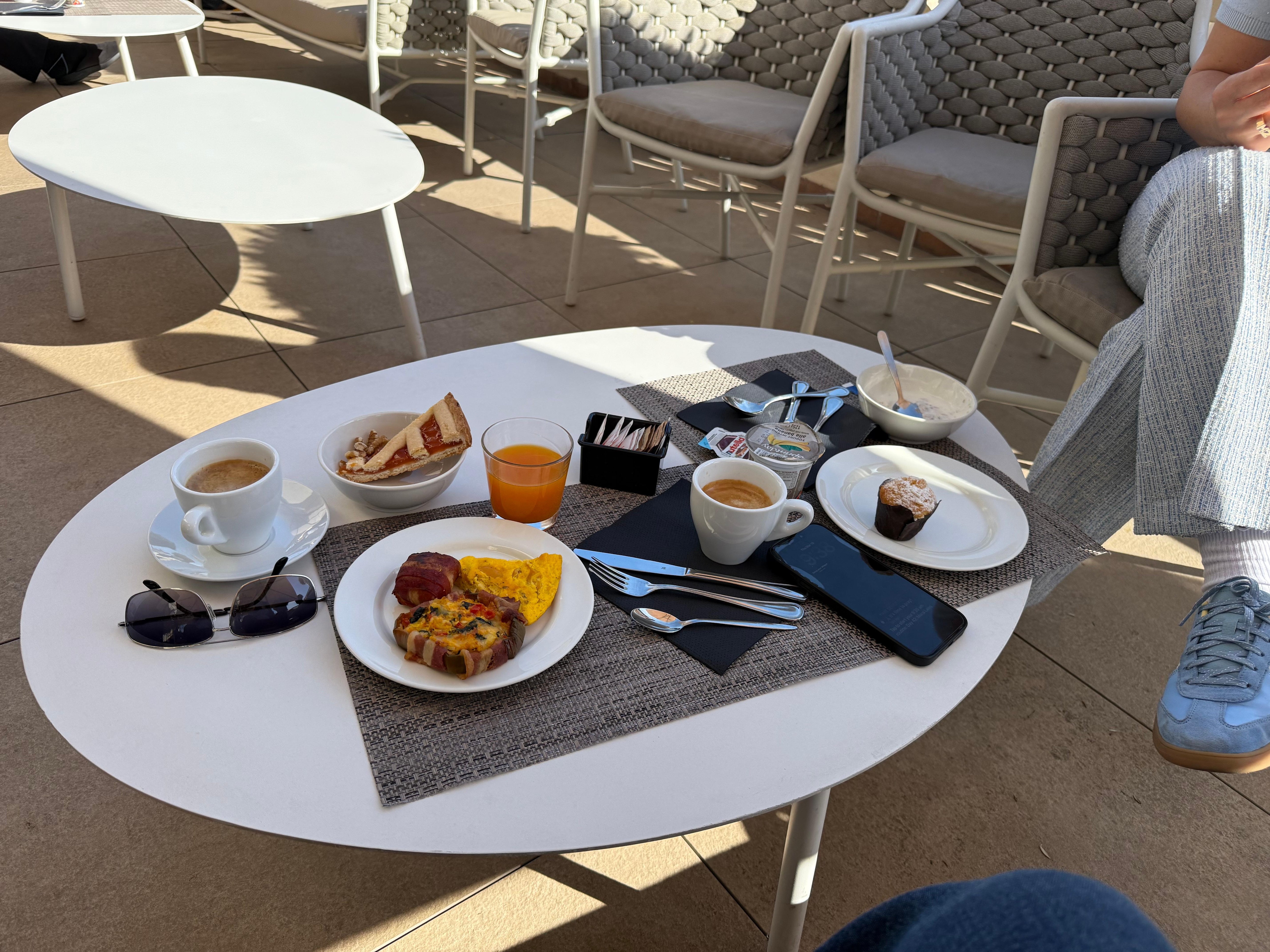 Simply perfect. Simone at the front desk was a gem. I wish every concierge was like this. He was extremely articulate with directions and suggestions. Room was large and bathroom was spacious and modern. We asked for more towels and got them in 30 seconds. Buffett breakfast was outstanding and the view from breakfast was fantastic
