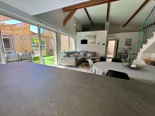 Die Unterkunft verfügt über garten, gartenmöbel, umzäuntes grundstück, terrasse, waschmaschine, grill, internet (wlan), kinderbereich, elektroheizung, klimaanlage, swimming-pool privater pool, parkplatz im freien in auf dem grundstück, 2 Fernsehgeräte.