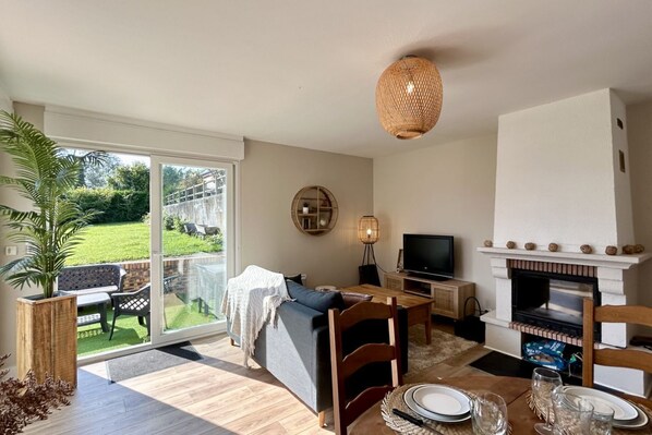 Pour les soirées plus fraîches, vous pourrez profiter de la belle cheminée dans le salon, créant une ambiance chaleureuse et conviviale. Et dès que le temps le permet, la grande terrasse devient le lieu idéal pour des soirées barbecue en plein air, avec un mobilier extérieur confortable.