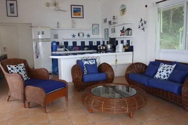Dieses Ferienhaus am Strand bietet eine Küche und einen Patio