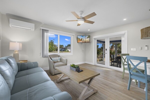 Cute place. Connected to other properties. Has own screened in porch. Miniature kitchen sufficient for making snacks but definitely not meal prep. Cabin built for super tall people (and I’m 5-7”), the mirror in the bathroom, the kitchen cabinets etc lol. Could have used an stool. Arrived from a day of traveling with 1/2 a roll of toilet paper. Everything was closed and found a gas station on the island to buy some to get through the night. Asked property owner where more TP was. They said they don’t supply, which is completely absurd. (They did drop off a roll 24 hours later). Cabin is a 10 minute walk to the beach down a residential road and then lots of sand until waters edge. They have super cute bikes that you can ride there or you can drive down the road to where the sand begins. I’ve stayed a lot of places and the lack of amenities here is pretty astounding. (1 towels per person, 1 garbage bag, 1/4 of a sponge). But loved the bikes, and they had a wagon and chairs to use too, Which was great. We love Sanibel.