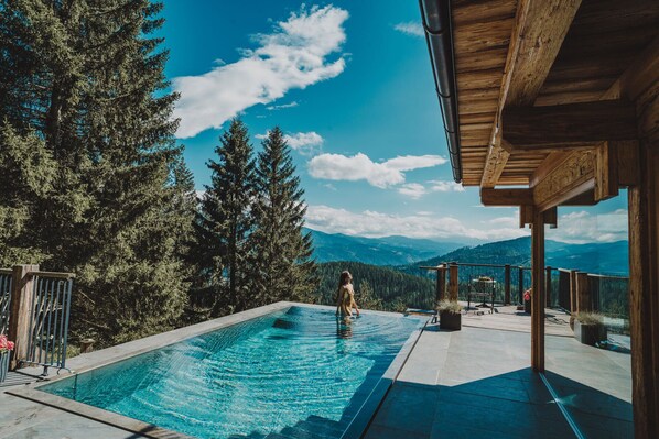 Dieses Chalet für Familien verfügt über: Außenpool und Sauna