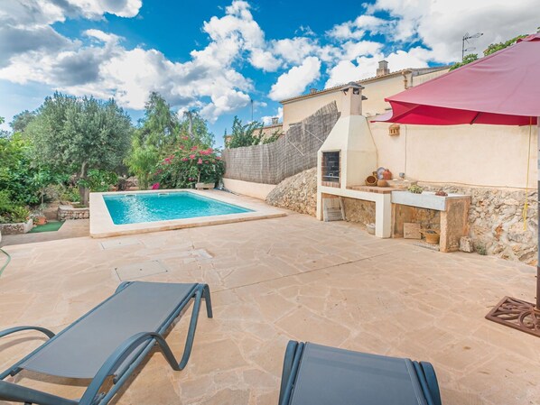 Alleinstehendes Ferienhaus mit privatem Pool, Klimaanlage, TV, Terrasse, Haustiere erlaubt