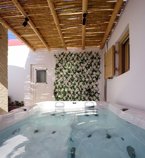 Charming House in the Heart of Oia, Private Jacuzzi, Spacious Yard and Kitchen