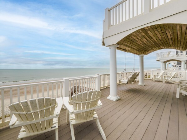 Location is nice and beach is beautiful. Very disappointed with house. Hot tub was dirty when we arrived. Guy came to clean it but only opened it half way and left crusted sand on the walls. Main TV kept turning off; fireplace is for show only; back game room had no electricity so couldn't play arcade; pillows and towels are cheap; kitchen equipment is old and rusty; kitchen drawers were dirty; freezer iced up; living room carpet and upholstery was stained and dirty. The worst problem we had was that all the bathroom doors are very narrow (22' wide). My husband's walker would not fit through the doors so it took two people to help him every time he needed to use the bathroom. Also the shower had no grab bars and a slick floor. Since the house has an elevator, I thought it would be more user friendly for a person with mobility issues. We rented the house for a week, but left early. The property management was not very helpful either. Bad experience all around. Would not recommend.