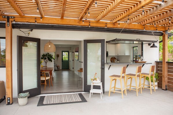 Coastal beach home with tropical yard & play area. 5 min from beach & race track